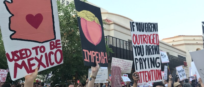 Donald Trump came to town last night. I decided to head downtown to physically stand up to a person that I disagree with wholeheartedly. I knew I wasn’t going to be the only person in downtown, but I was not prepared for the large crowd of protestors President Trump would be attracting in Phoenix.